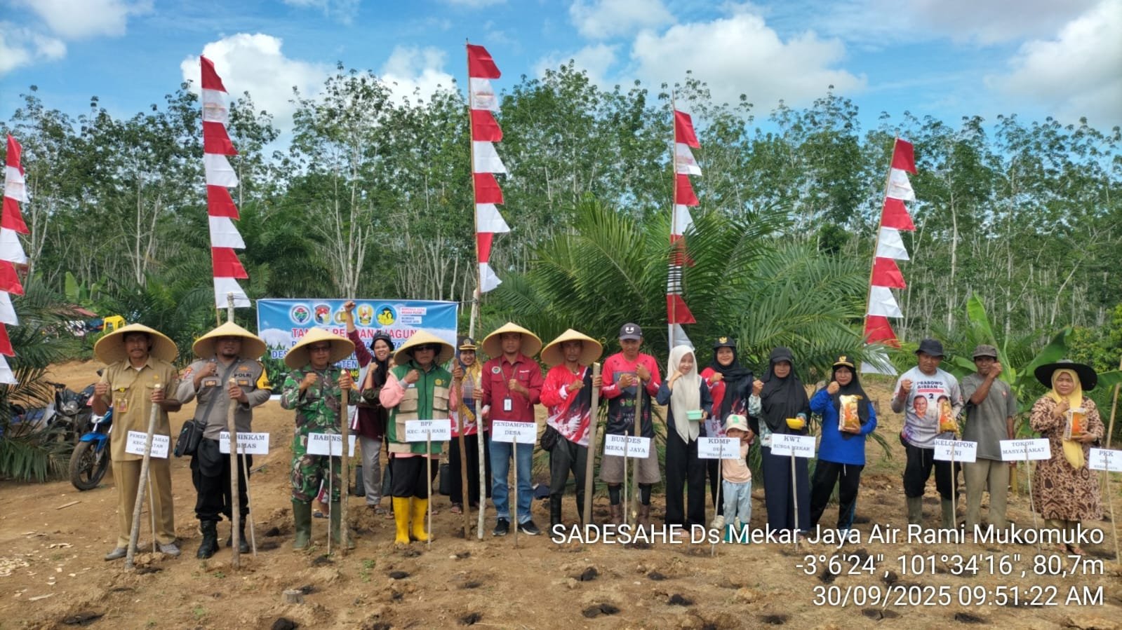Mukomuko – Upaya memperkuat ketahanan pangan terus digencarkan Pemerintah Desa Mekar Jaya, Kecamatan Air Rami, Kabupaten Mukomuko. Melalui Program Sadesahe Tanaman Jagung, desa ini resmi meluncurkan kegiatan penanaman jagung sebagai langkah strategis dalam mendukung ketersediaan pangan dan peningkatan ekonomi masyarakat, Senin (30/9/2025).