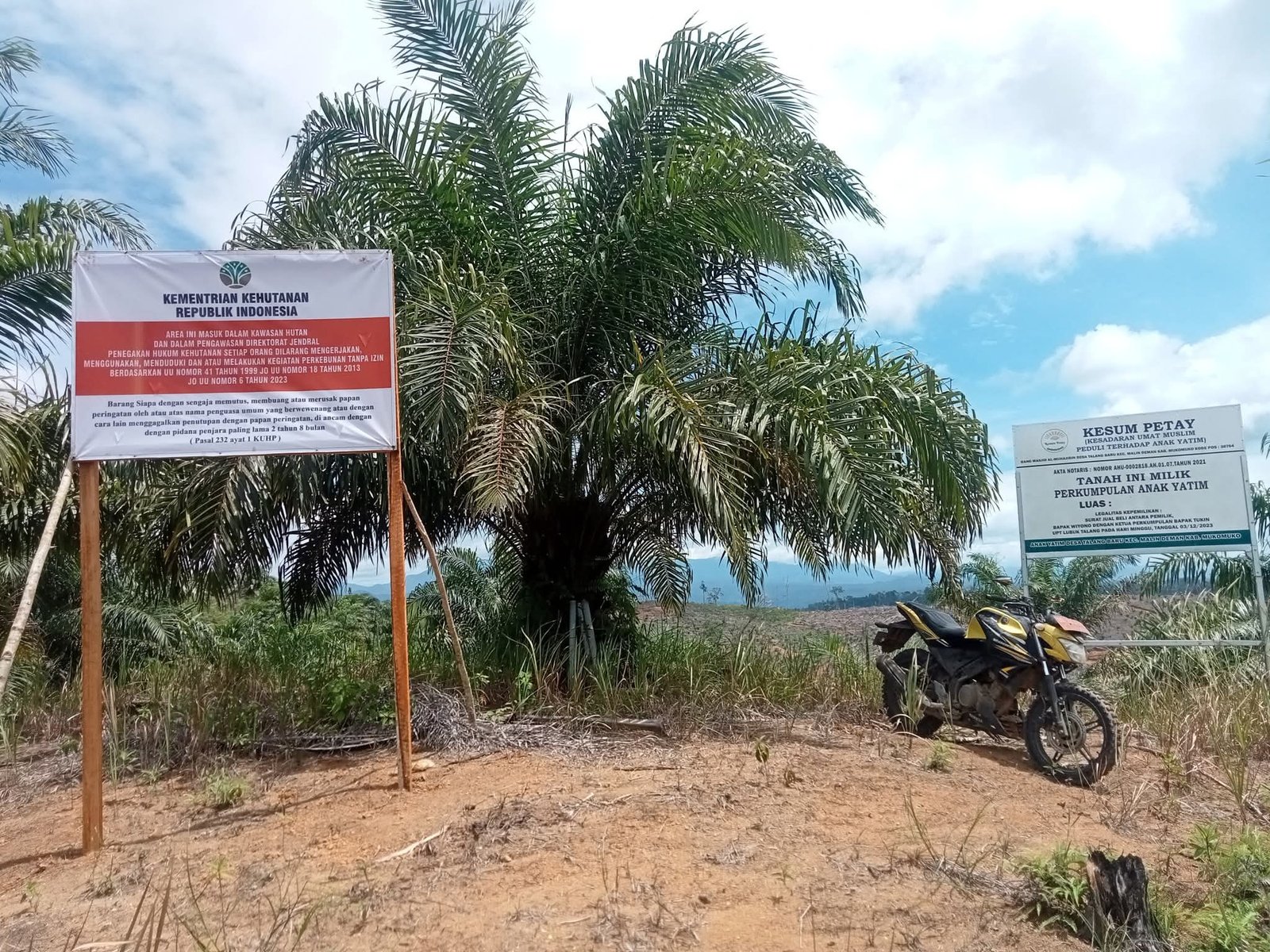 Mukomuko – Kepala Desa Talang Baru, Tukin, secara resmi menyampaikan surat terbuka kepada Presiden Republik Indonesia, menteri terkait, dan jajaran penegak hukum mengenai polemik lahan milik Perkumpulan Anak Yatim “Kesum Petay” yang berada di dalam kawasan Hutan Produksi Terbatas (HPT).