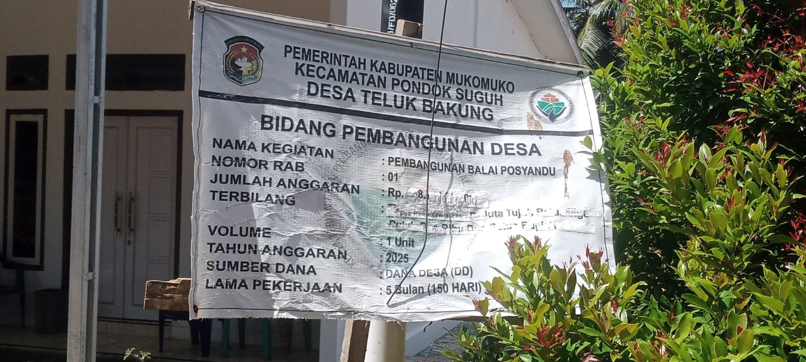 Mukomuko – Pembangunan gedung Posyandu di Desa Teluk Bakung, Kecamatan Pondok Suguh, Kabupaten Mukomuko, menjadi sorotan warga. Proyek yang bersumber dari Dana Desa (DD) tersebut diketahui menelan anggaran lebih dari Rp300 juta, namun dinilai dikerjakan asal jadi dan minim transparansi.